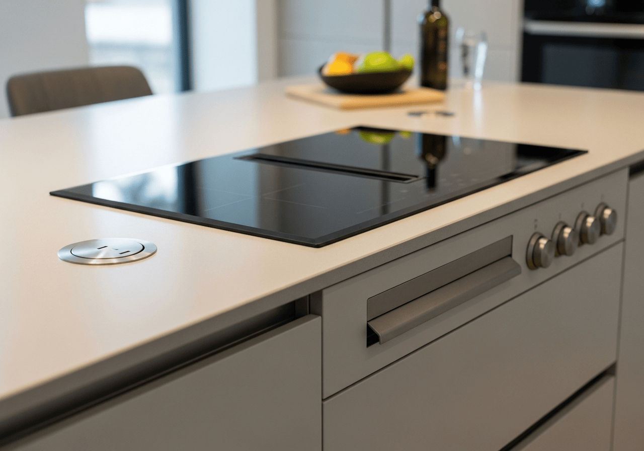 Szafki i szuflady, czyli sprytne rozwiązania do przechowywania, pomagają utrzymać porządek i sprawiają, że Twoja wyspa kuchenna jest naprawdę funkcjonalna. Gdy wyspa jest dobrze zaprojektowana, masz dużo miejsca na garnki, patelnie i naczynia, co od razu zmniejsza bałagan. Z kolei zintegrowane urządzenia, takie jak okap kuchenny, gniazdko elektryczne czy wbudowana płyta indukcyjna, znacznie podnoszą jej użyteczność.